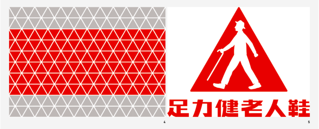 The original Zulijian symbol was relatively abstract, making it difficult to recognize and understand, and it had not accumulated brand equity. The core problem was the lack of category information. Hua & Hua created a brand new Super Sign for Zulijian: Within a red triangle border, there is a walking elderly person wearing a gentleman's hat and holding a walking cane, taking vigorous strides forward. This conveys a positive, healthy, optimistic, and upward spirit. At the bottom is the brand name, "Zulijian Elderly Shoes," allowing people who encounter the brand for the first time to clearly understand what the product is and its category at a glance.