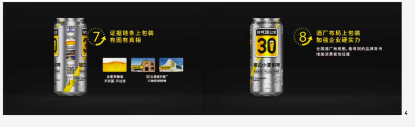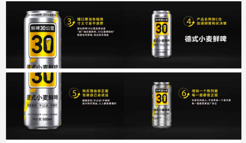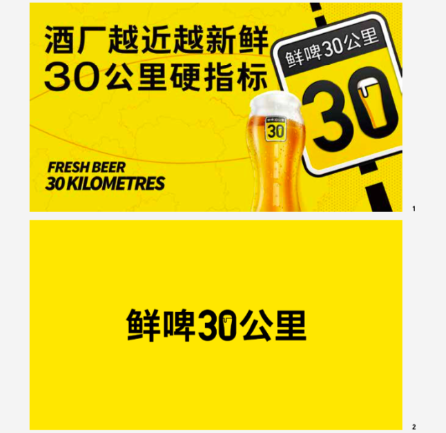 All strategies are discourse strategies. Using language to create brand value, reduce communication costs, and establish consumers' purchase reasons. Based on the "Fresh Beer" strategy and the brand name "Fresh Beer 30 Kilometres," Hua & Hua creatively designed the brand proverbs "The closer the brewery, the fresher the beer. with the hard target of 30 kilometers," establishing a category barrier.